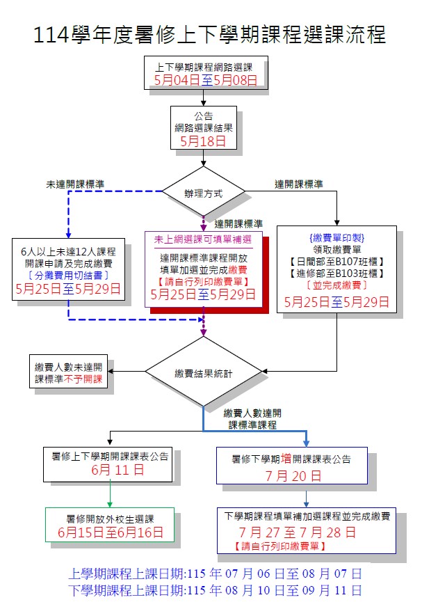 (一) 114.3及114.4上下學期暑期重修開課科目、任課老師及上課教室於06月11日公布於教務處課務組網站。